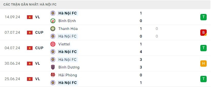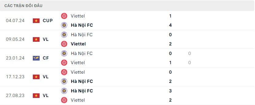 Kết quả các trận đối đầu gần đây nhất giữa Viettel vs Hà Nội