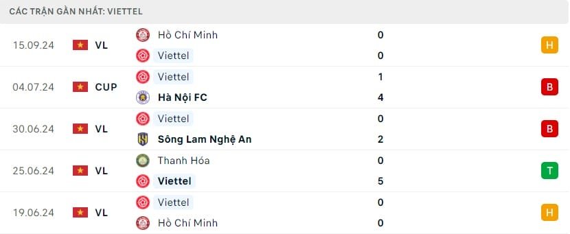 Trong 3 trận đấu chính thức gần nhất, Viettel không thắng trận nào, bao gồm 2 trận thua. Hàng công Viettel chỉ ghi được 1 bàn trong 3 trận này nhưng thủng lưới tổng cộng 6 bàn.