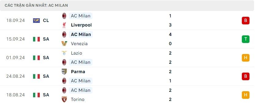 Phong độ AC Milan