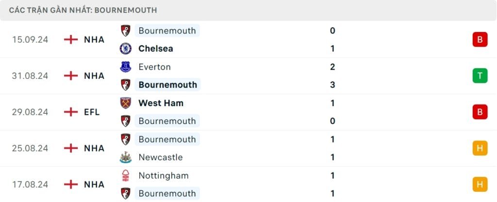Phong độ Bournemouth