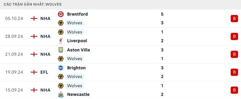 Wolves tụt xuống vị trí thứ 20 với 1 điểm sau 7 vòng đấu. Họ vừa góp mặt trong một trận đấu kịch tính gặp Brentford trên sân khách nhưng nhận thất bại 3-5. Hàng thủ Wolves đang chơi tệ hại vì nhận tận 21 bàn thua.