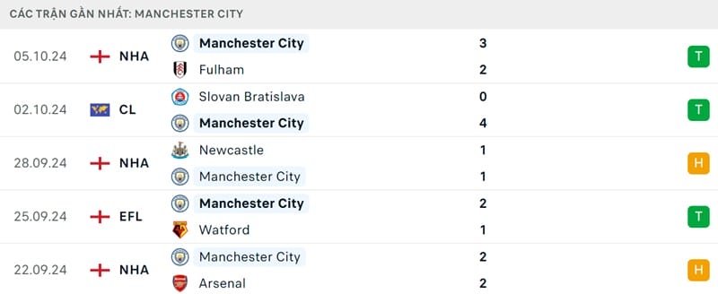 Tại Premier League mùa này, Man City vẫn đang bất bại với 5 thắng và 2 hòa. Ở Champions League, họ thắng 1 và hòa 1 sau 2 lượt đầu tiên.