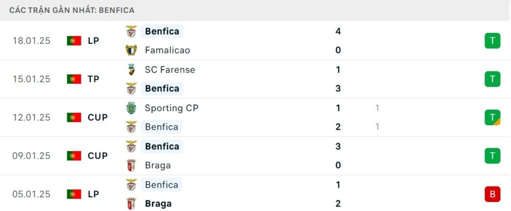 Phong độ Benfica vs Barcelona