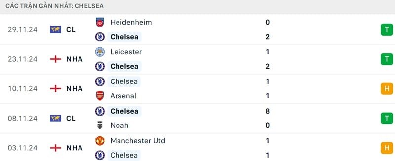 Phong độ Chelsea vs Aston Villa