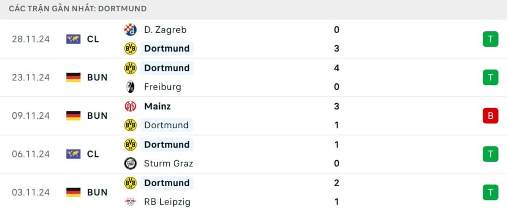 Phong độ gần đây Dortmund vs Bayern Munich