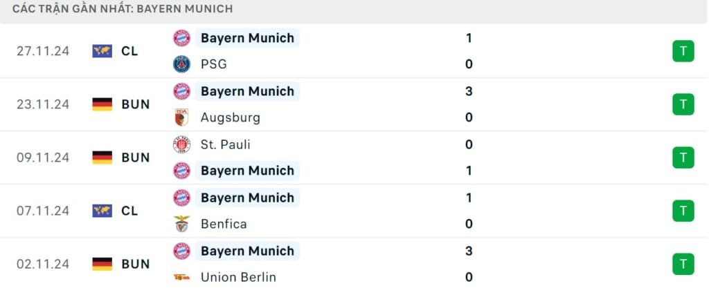 Phía bên kia, Bayern Munich cũng đang xây dựng triều đại mới dưới quyền HLV Vincent Kompany. Tuy nhiên, chiến lược gia người Bỉ dù chưa gây ấn tượng quá mạnh về mặt lối chơi, nhưng vẫn đảm bảo thành tích ổn định cho đội nhà. Hùm Xám đang duy trì mạch trận bất bại từ đầu mùa với 9 chiến thắng cùng 2 trận hòa, vững vàng ngôi đầu với 29 điểm.