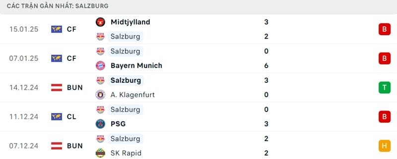 Phong độ của Salzburg