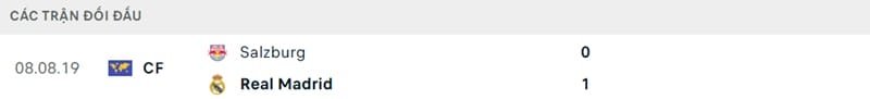 2 đội mới gặp nhau 1 lần ở trận giao hữu vào năm 2019. Real đánh bại Salzburg với tỷ số 1-0.